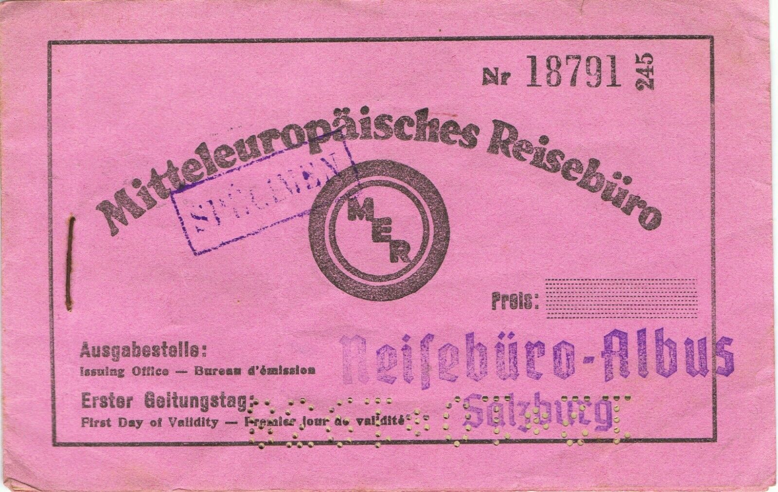 Railway tickets Austria Salzburg third class booklet 1938
