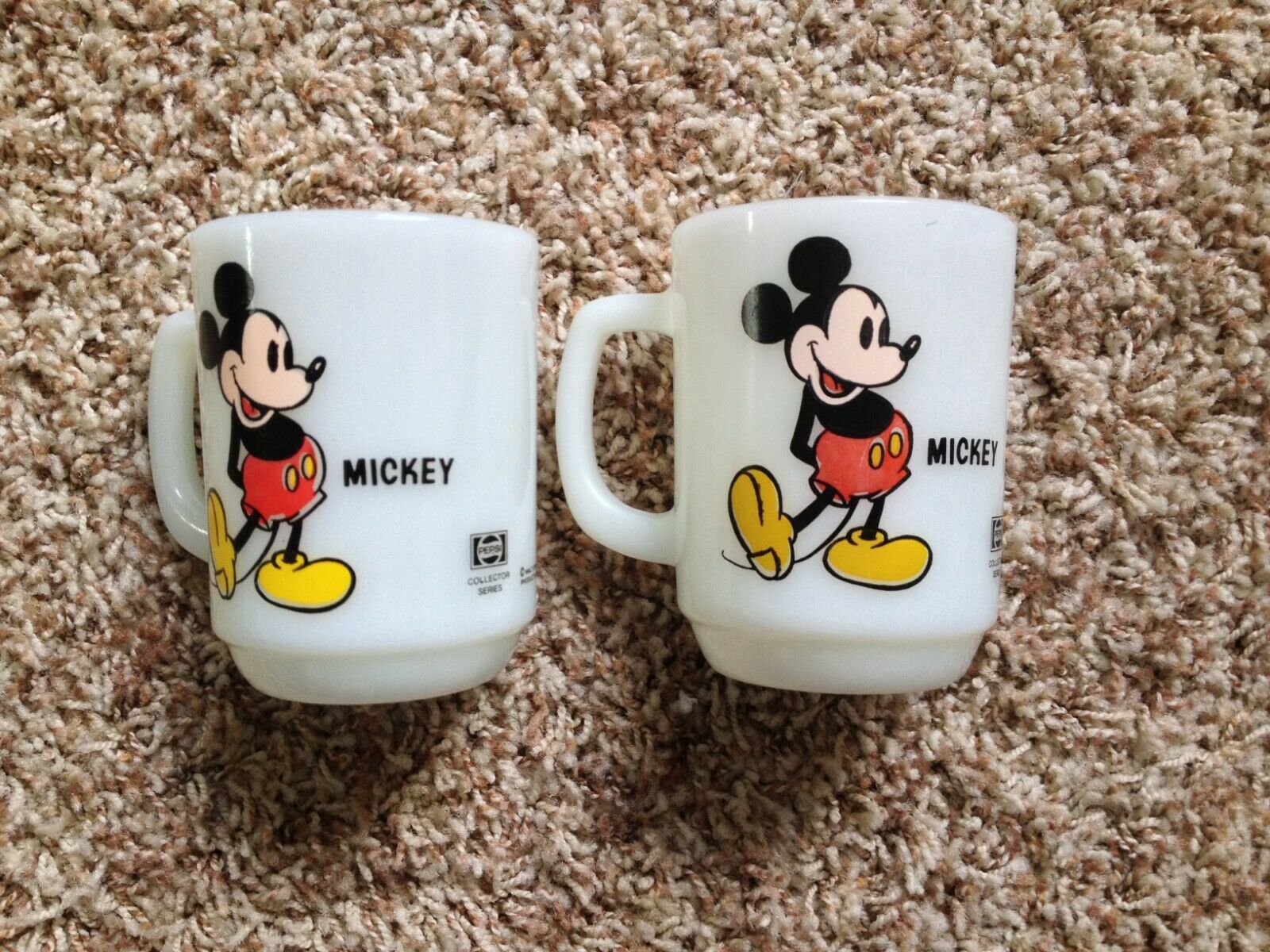 Two Vintage Anchor Hocking Milk Glass Mickey Mouse "D" Handle Mugs Pepsi Promo