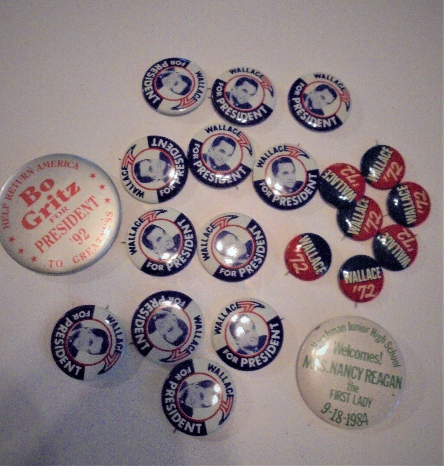 Title (ebay affiliate link): GEORGE WALLACE POLITICAL CAMPAIGN BUTTONS +BO GRITZ AND NANCY REGAN