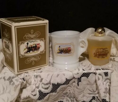 AVON DEEP WOODS AFTERSHAVE IRON HORSE SHAVING MUG 7 OZ FULL MILK GLASS SPLASH