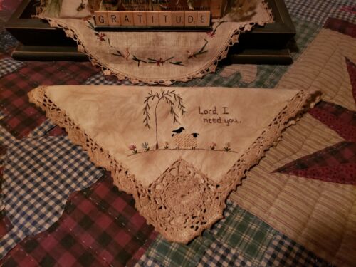 ~*Awesome~* Primitive "LORD, I NEED YOU" Hand Stitched Doily! Oh My!