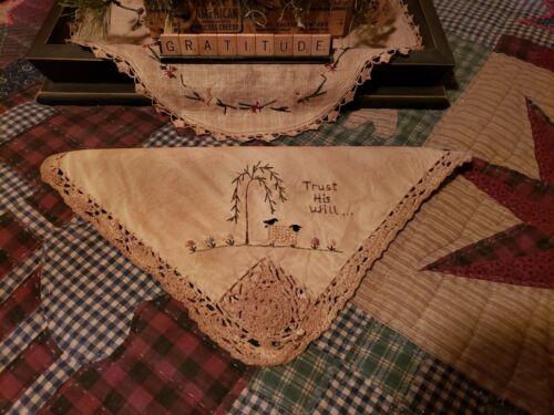 ~*Awesome~* Primitive "TRUST HIS WILL" Hand Stitched Doily! Oh My!