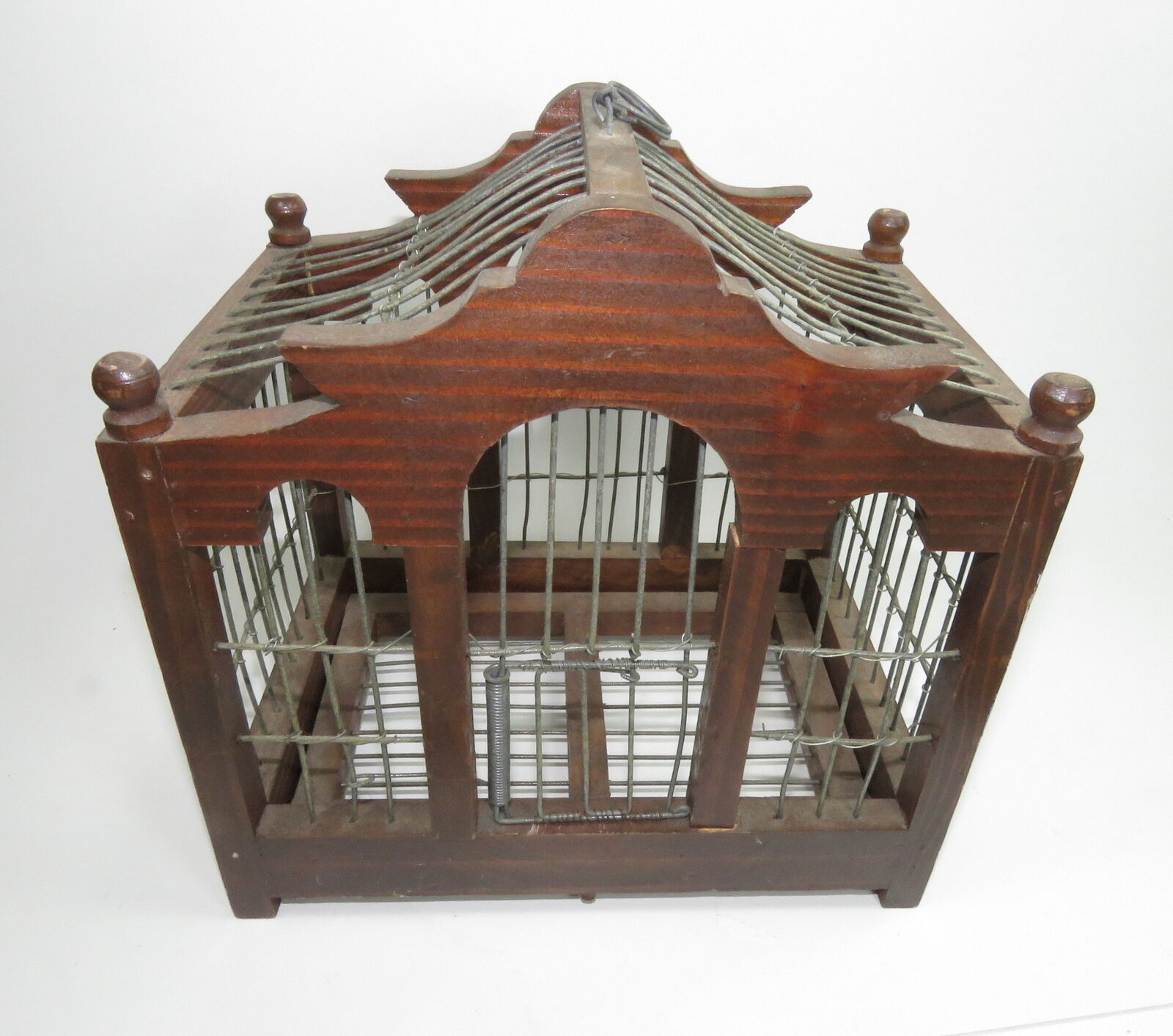 Title (ebay affiliate link): Vintage Primitive Wood and Wire Hand Made Bird Cage Dome Roof