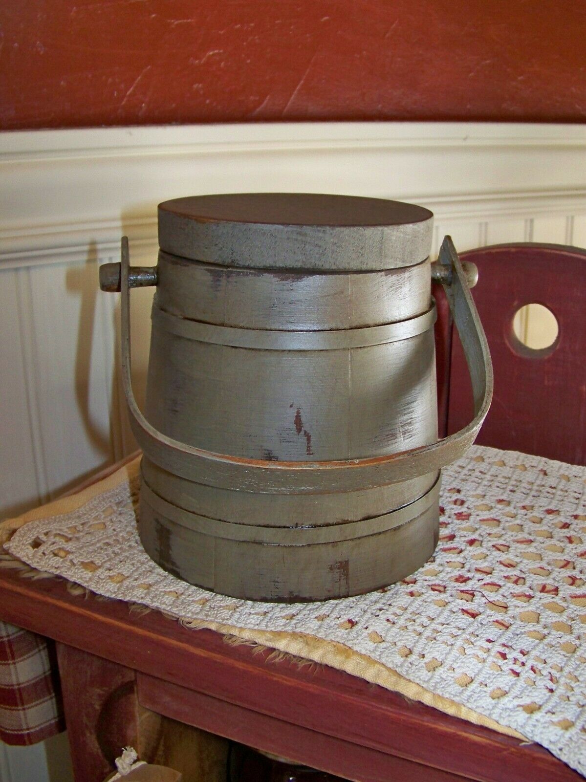 Title (ebay affiliate link): Primitive Painted Sm Firkin Sugar Bucket Metal Bands Canted Swing Handle