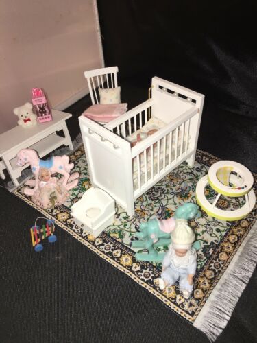 Title (ebay affiliate link): Dollhouse Furniture Miniature Nursery Room Set, 15 pc, White
