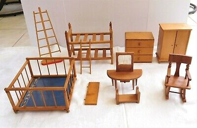 Vintage Wooden Doll Furniture Ginny Size Play Pin Bunk Bed Dresser Vanity Chair