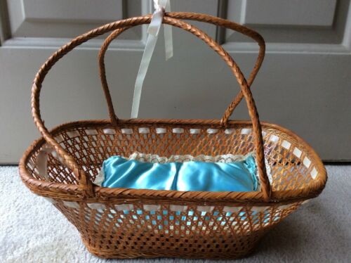 Title (ebay affiliate link): Vintage Doll Baby Bassinet Wicker Basket Bed W/ Pillow For 12" Or Smaller #10