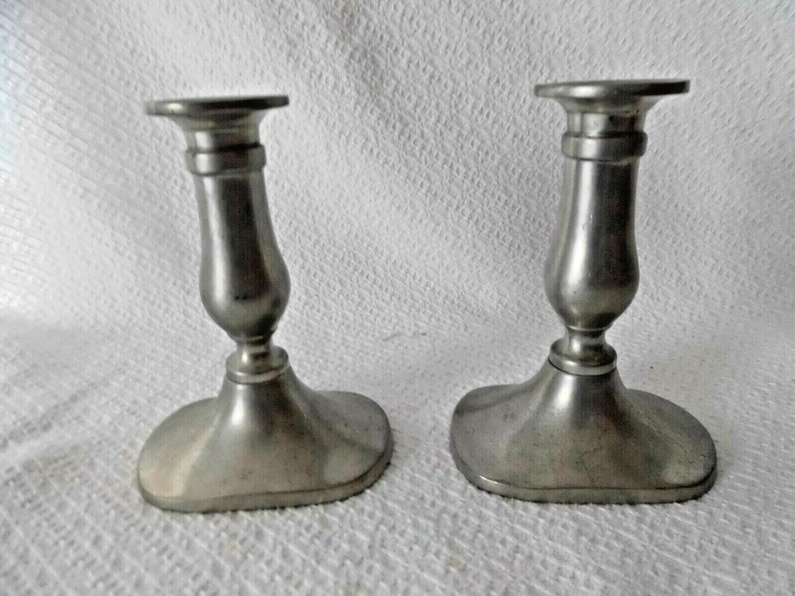 VINTAGE COLONIAL WILLIAMSBURG, STIEFF PEWTER CANDLEHOLDERS PAIR,CW-31,FEDERAL