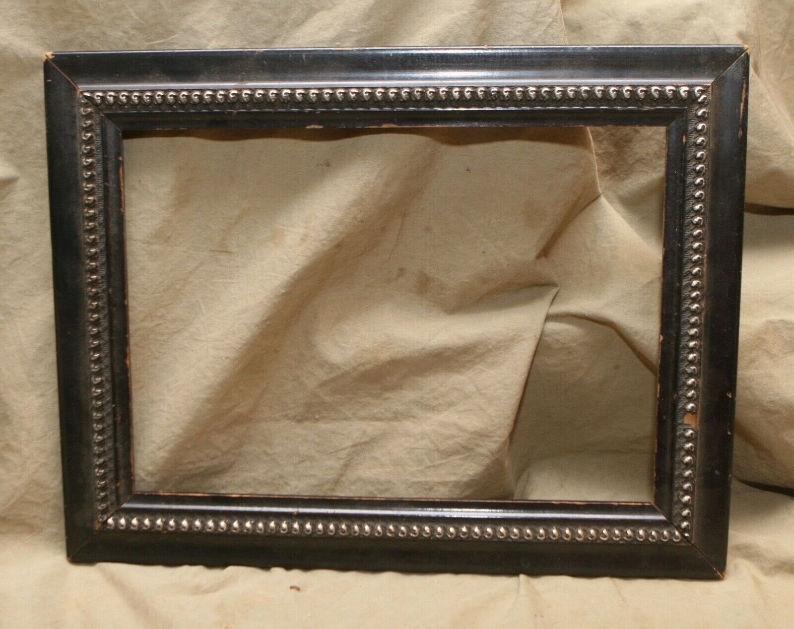 Title (ebay affiliate link): Antique 19th C Pine Wood Picture Frame ~10"X14" Raised Gesso Design Black Paint