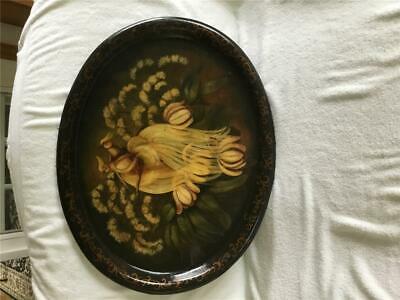 EARLY LARGE VINTAGE TOLEWARE TRAY PAIR OF PHONIX BIRDS-GOLDEN PHEASANTS NICE!!