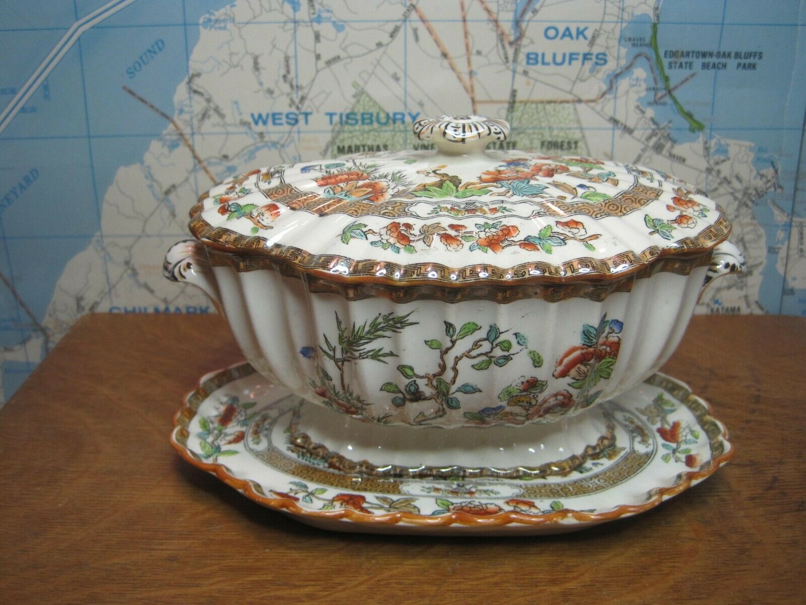 Antique Copeland India Tree Small 8" Tureen & Under Plate 2 / 916 1880''S
