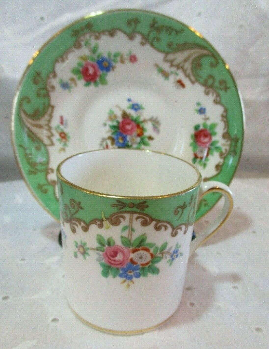 Vintage Demitasse Mini Teacup & Saucer Green Floral Tuscan English Blenheim