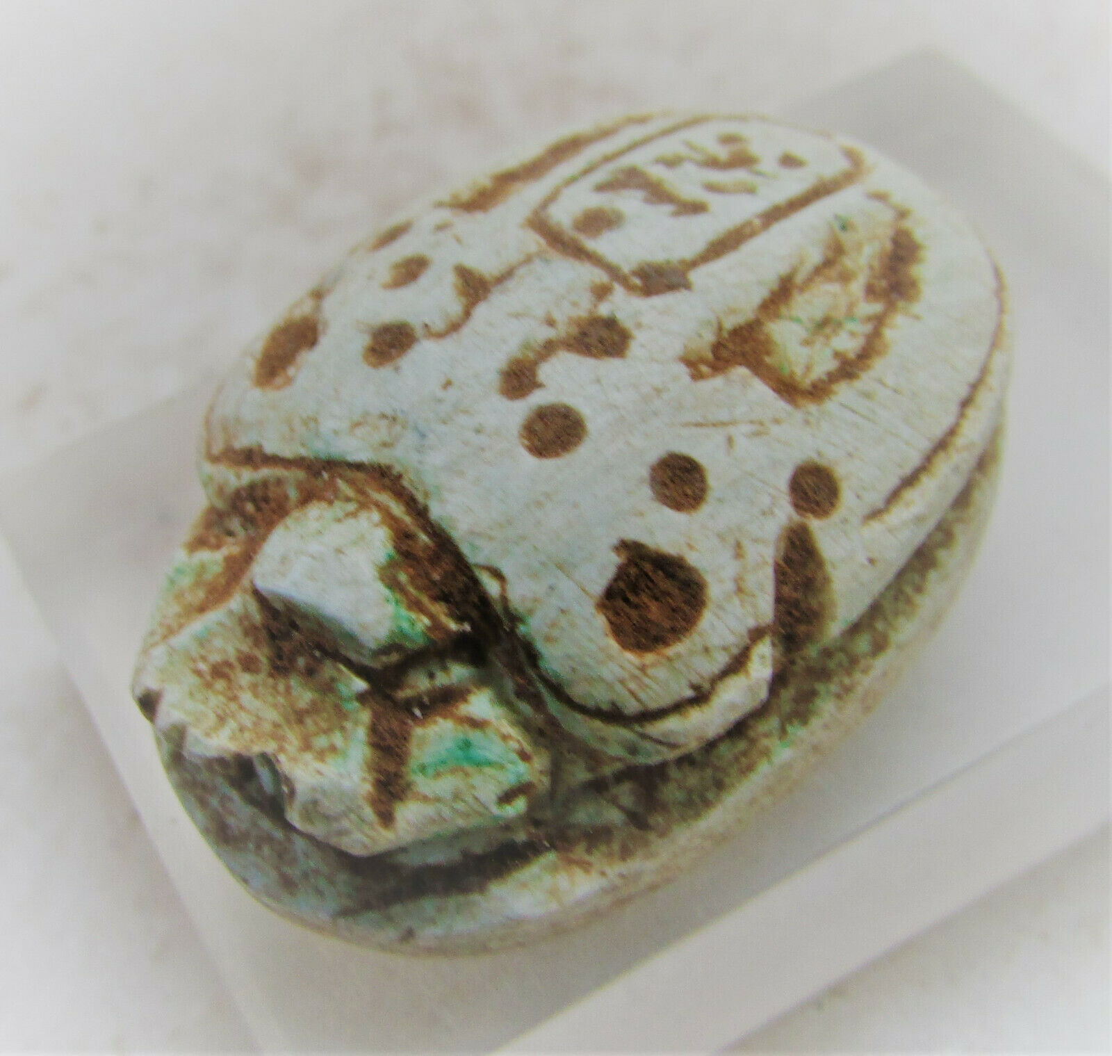 Title (ebay affiliate link): SCARCE CIRCA 700-500BCE ANCIENT EGYPTIAN FAIENCE SCARABOID BEAD SEAL PENDANT