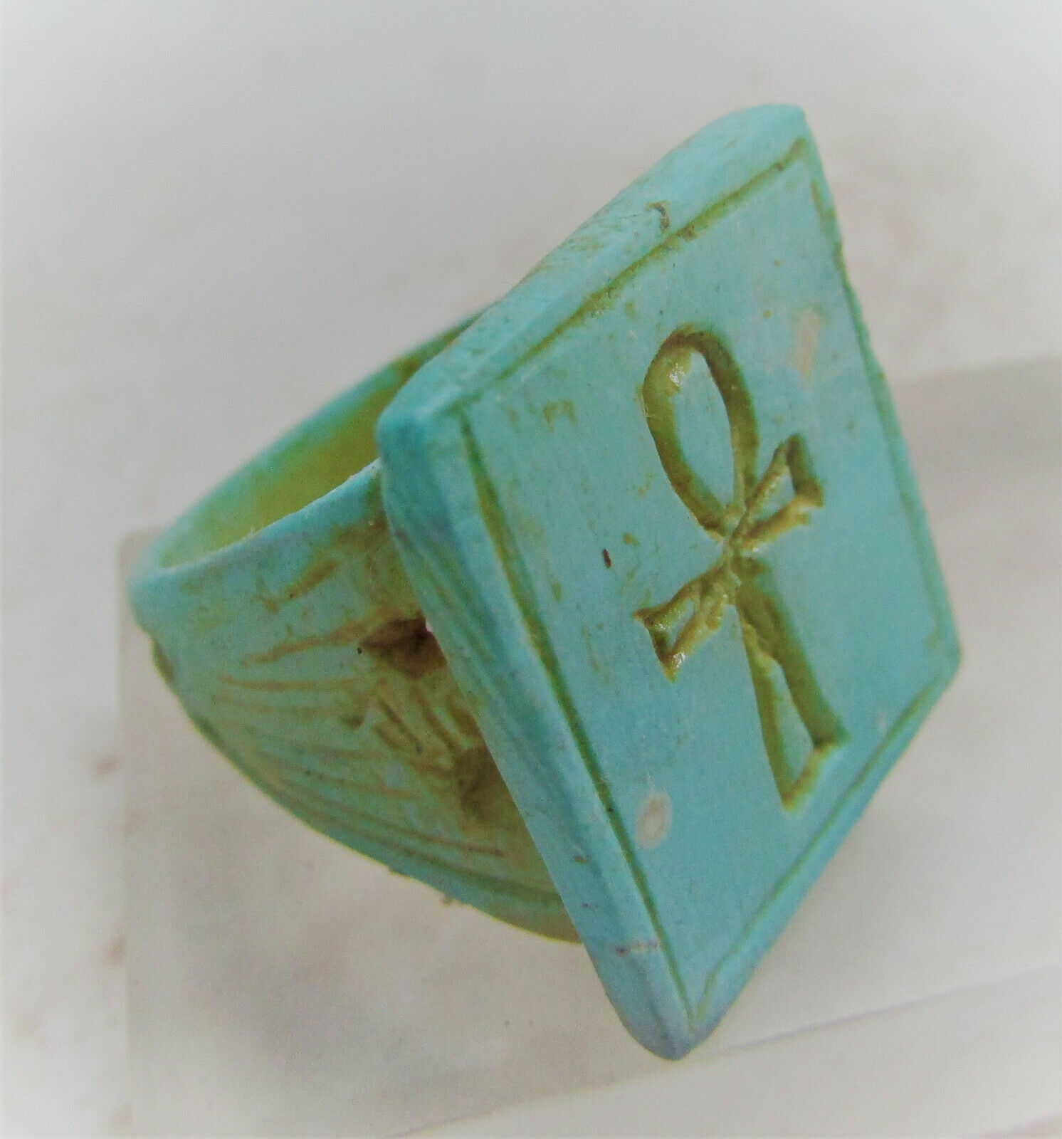 Title (ebay affiliate link): BEAUTIFUL ANCIENT EGYPTIAN GLAZED FAIENCE RING WITH AHNK KEY OF LIFE
