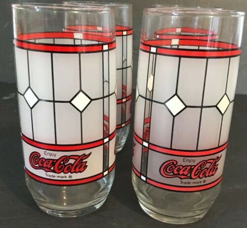 Title (ebay affiliate link): 4 Vintage Tiffany Style Coke Frosted Stained Glass Coca Cola Drinking Glasses