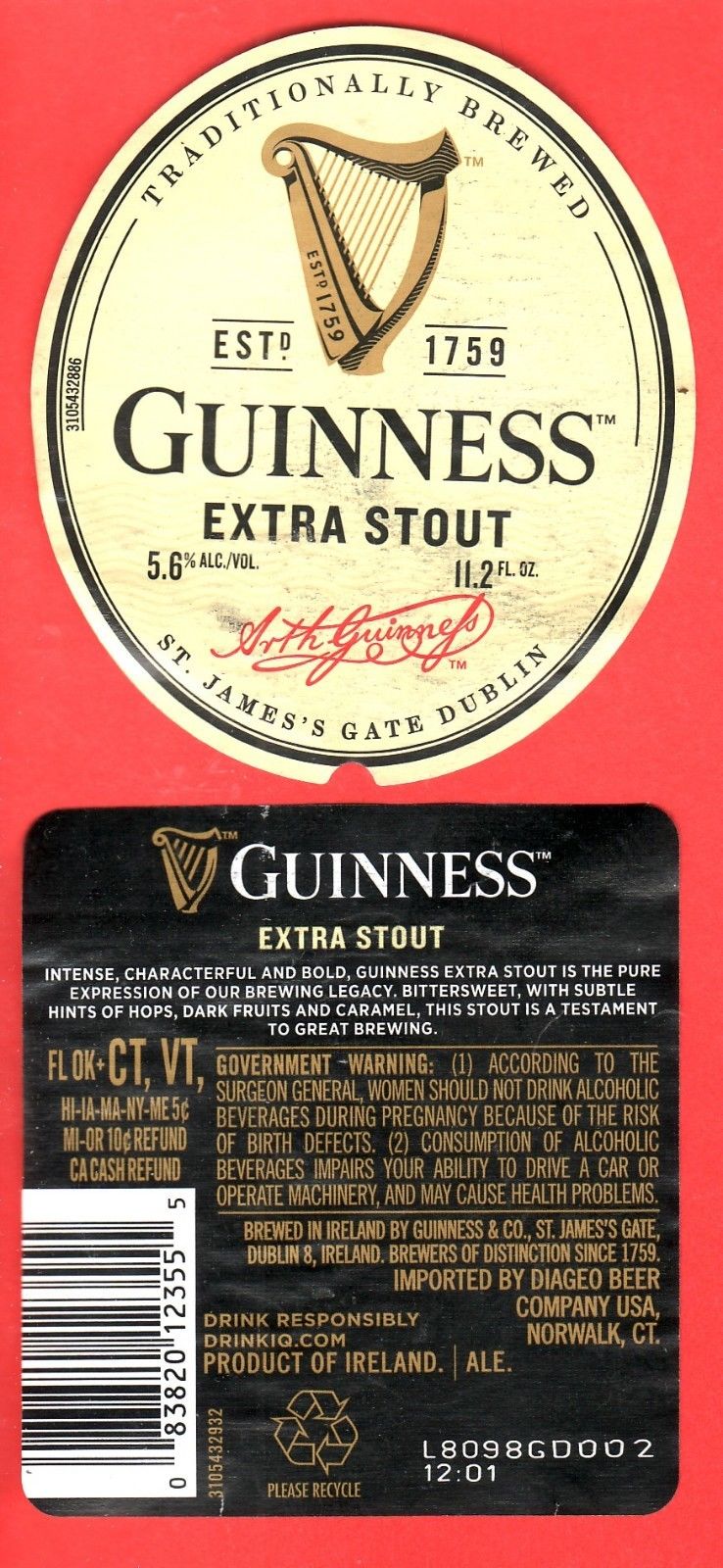 GUINNESS EXTRA STOUT BEER BOTTLE LABEL front & back