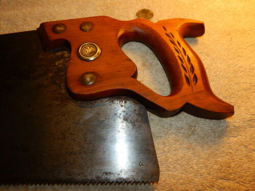 Hand saw, full, 26" 8ppi, carved handle, no name, nice!