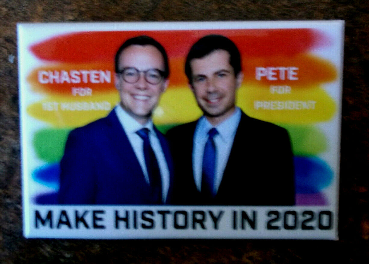 Title (ebay affiliate link): 2020 Democrat PETE BUTTIGIEG President PETE & CHASTEN MAKE HISTORY Photo Button