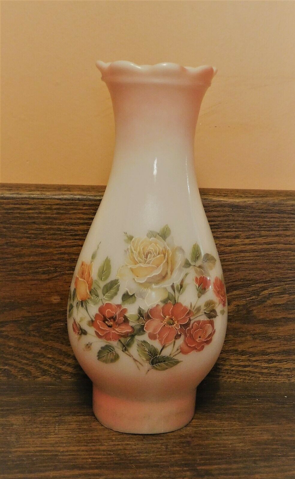 Vintage Hand Painted Milk Glass Oil Lamp Shade Chimney Floral