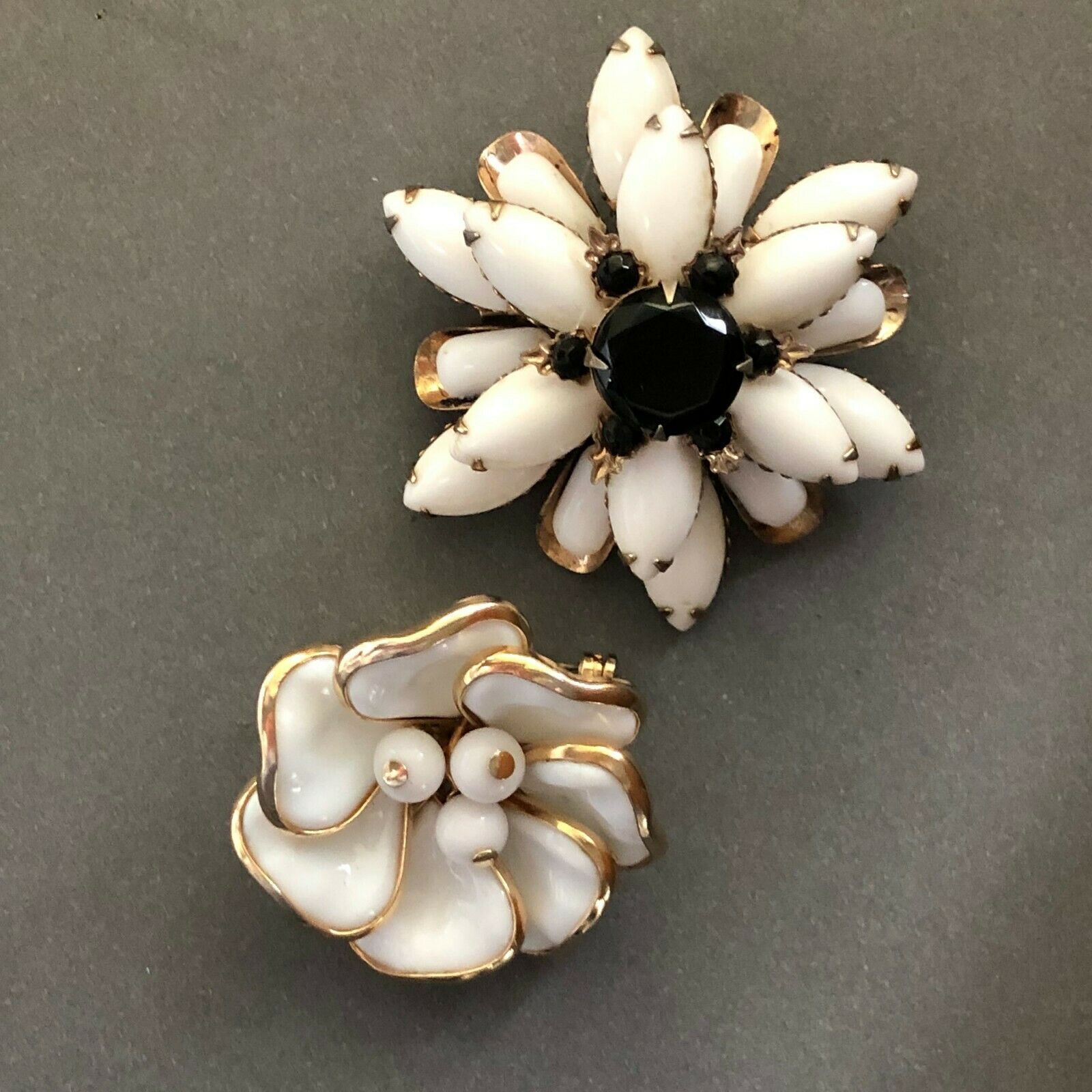 Milk Petaler - Vintage Milk Glass Flower Pins/ Brooches