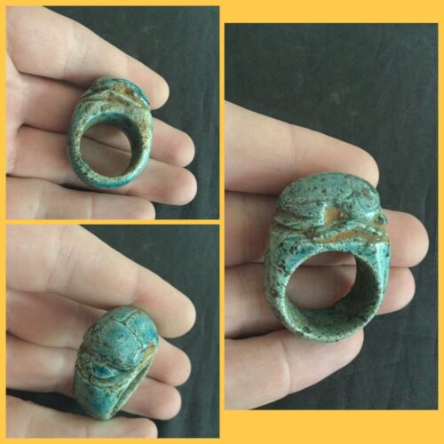 Title (ebay affiliate link): Rare ancient Egyptian blue faience scarab beetle amulet ring , 300 bc