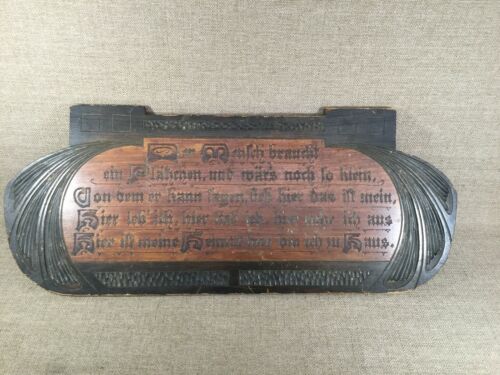 Antique German Art Deco Art Nouveau wood carved panel Architectural Sign Display