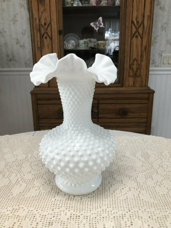 Title (ebay affiliate link): Large Vintage Fenton Hobnail White Milk Glass Double Crimped Vase