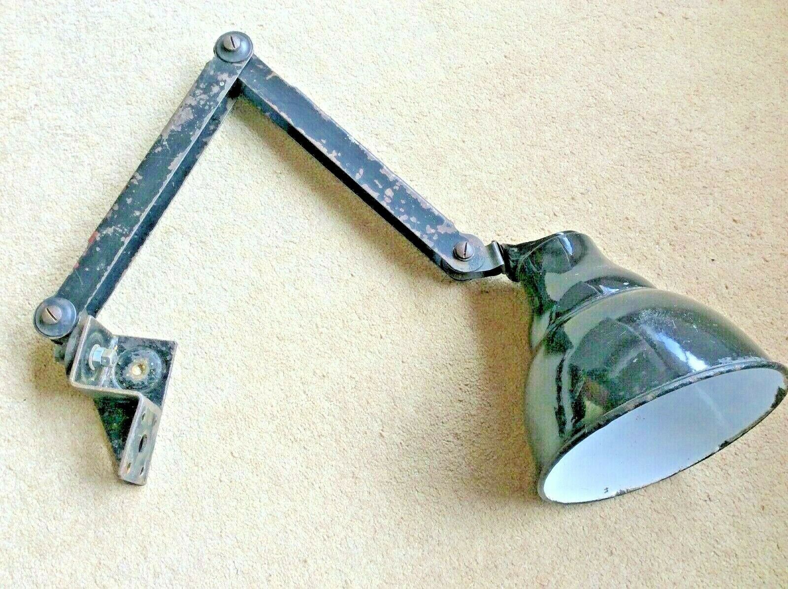 Title (ebay affiliate link): Original Vintage Black Industrial Machinist Light. Needs lampholder & rewiring.