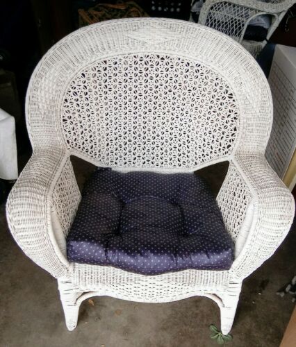 Title (ebay affiliate link): Gorgeous Antique Victorian White Shabby Chic Tight Woven Reed Wicker Arm Chair