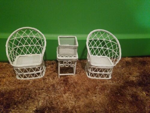 Title (ebay affiliate link): Dollhouse Lot Miniature Wire Wicker Metal Furniture White - Table & 2 chairs 3in