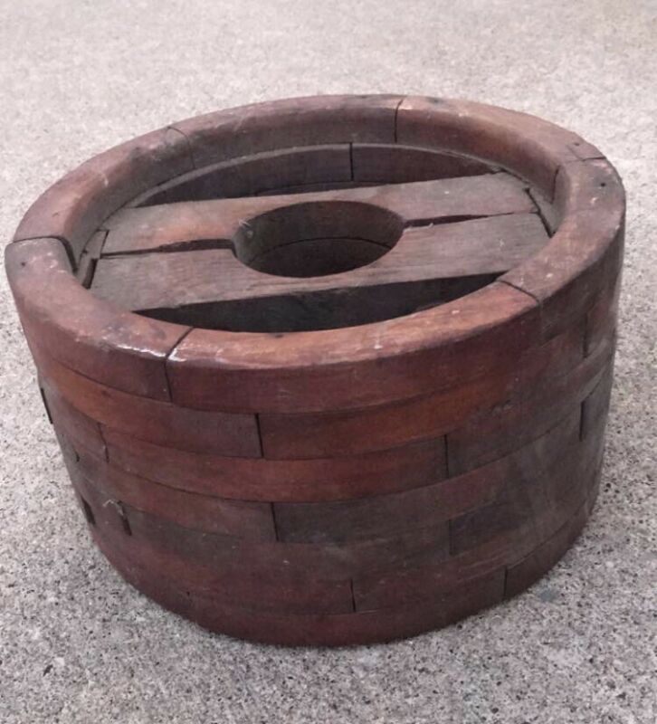 Title (ebay affiliate link): Antique Wooden Line Shaft Flat Belt Overhead Pulley Wheel Mirror Rare Vintage