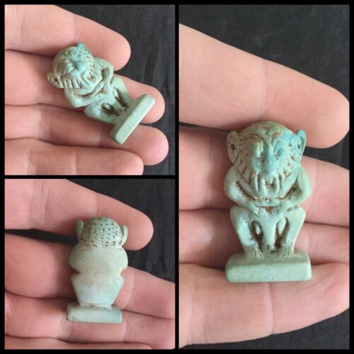 Title (ebay affiliate link): Rare ancient God Bess Egyptian blue glaze amulet, 300 /600 BC