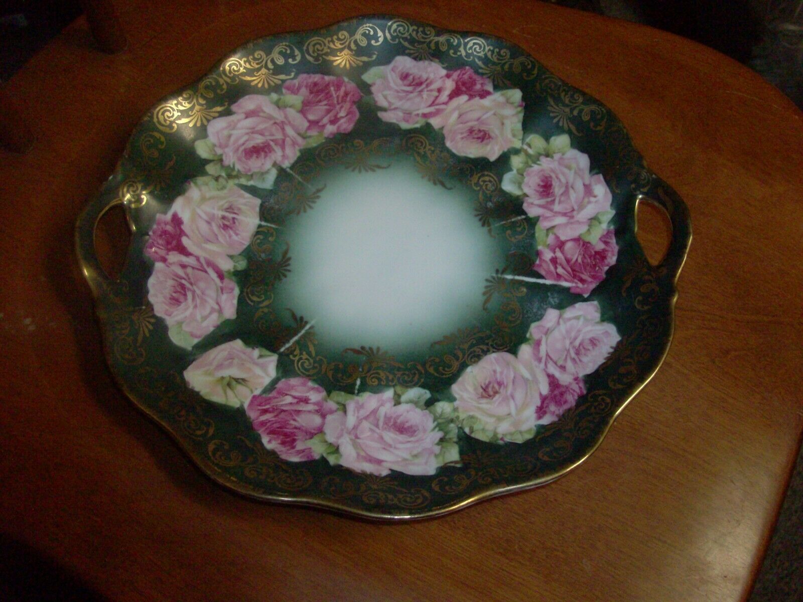 Stunning C.S. Germany Green Open-handled Plate With Roses