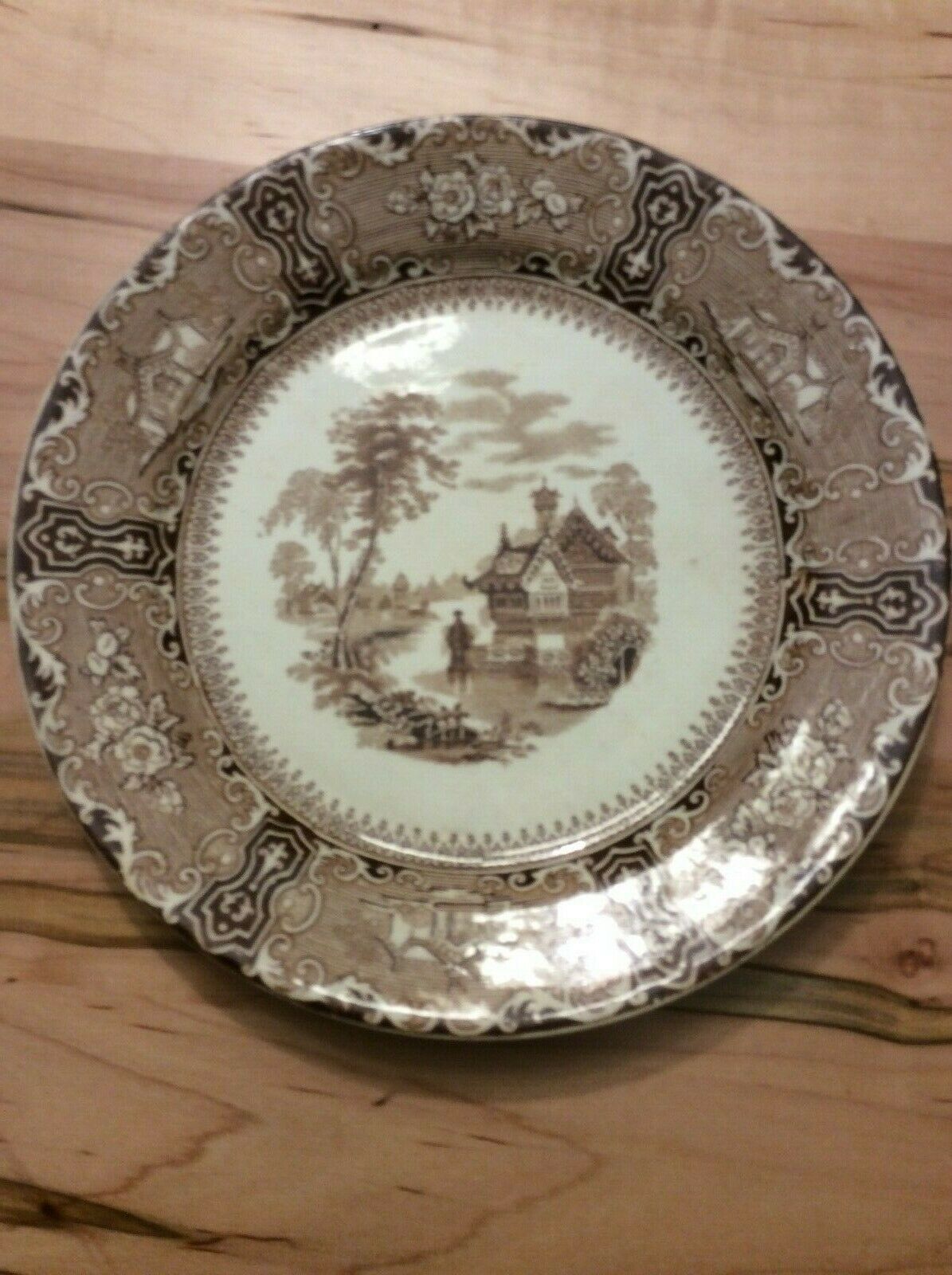 Title (ebay affiliate link): 1800''s Tillenberg Pattern Brown Transferware Plate Ironstone Clementson Bros.