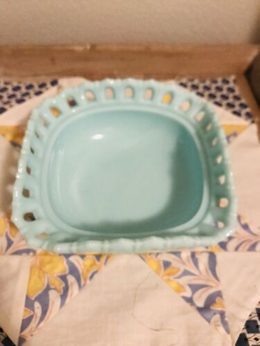 Vintage Blue Lattice Lace Milk Glass Bowl
