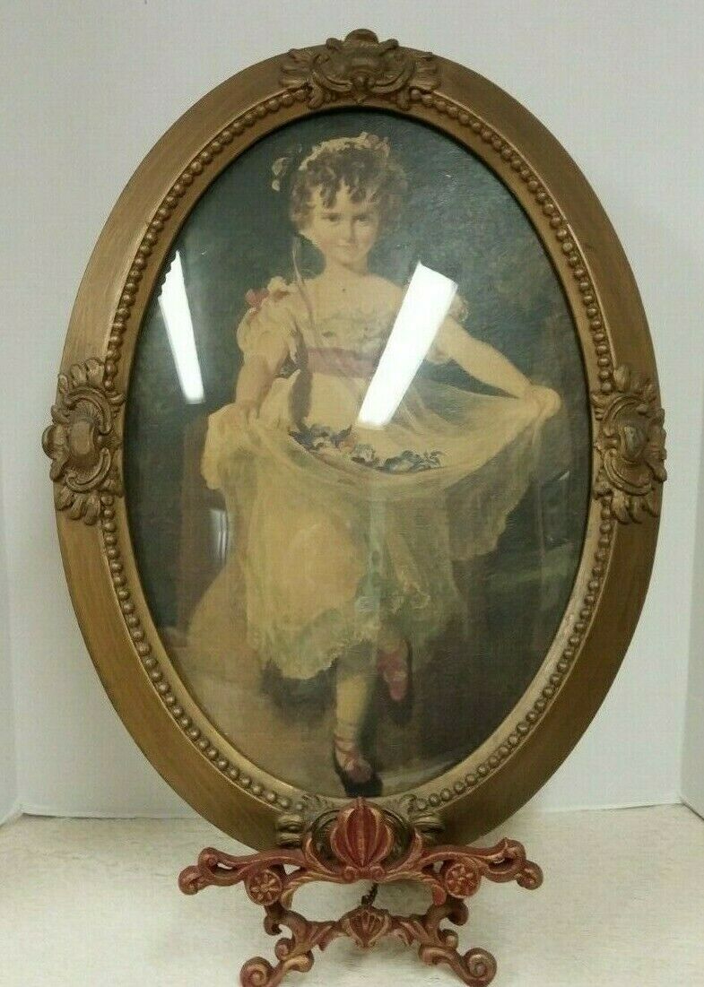VINTAGE OVAL CONVEX DOMED PICTURE FRAME WITH PICTURE