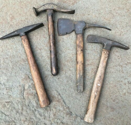 (4) Antique - Mining, Masonry, Brick, Hammer, Axe, Cobbler, UNUSUAL HAMMERS