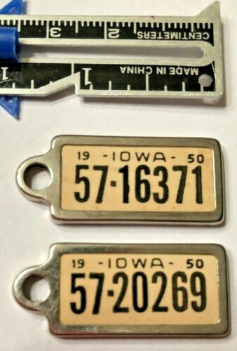 Title (ebay affiliate link): VINTAGE DAV - IOWA (2) 1950 key chain car license plates 57-20269 and 57-16371