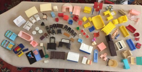 Huge Vintage Dollhouse Furniture Lot 90+ pieces Plastic Renwal Ideal Hong Kong