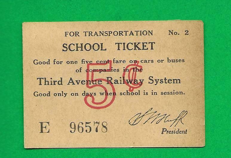Title (ebay affiliate link): 1900''s Third Avenue Railway System School Ticket 5 cent
