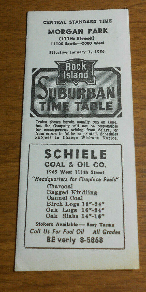 Title (ebay affiliate link): Chicago Rock Island Suburban Time Table JANUARY 1,1956 MORGAN PARK-POCKET SIZE