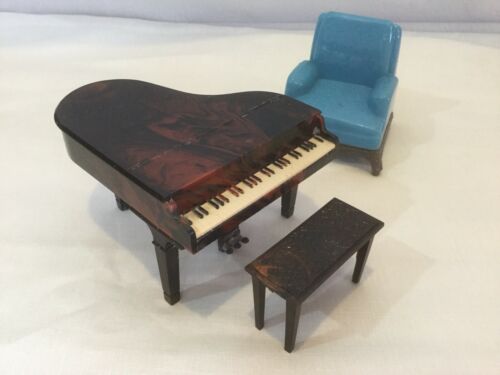 Title (ebay affiliate link): Vintage Renwal Dollhouse Furniture , Grand Piano , Bench , Blue Chair