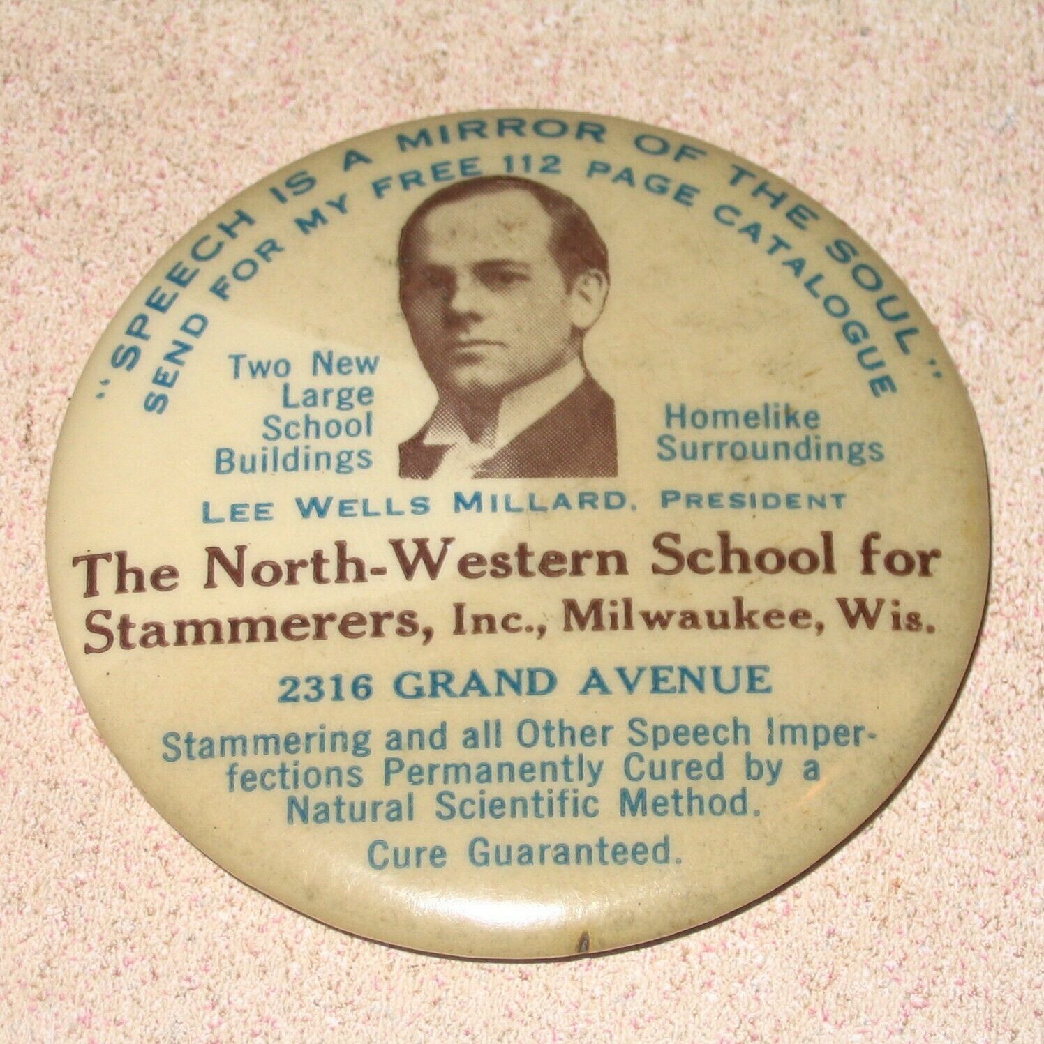 North Western School for Stammerers EARLY Celluloid Quack Medicine Pocket Mirror