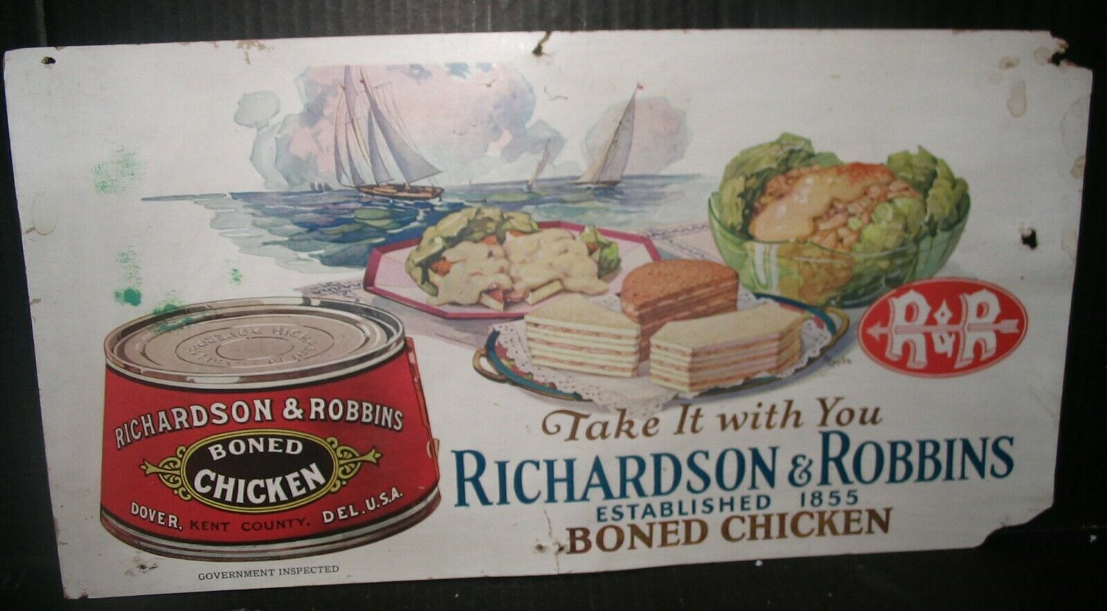 Richardson & Robbins Boned Chicken Vintage Cardboard Trolley Car Sign 21 x 11