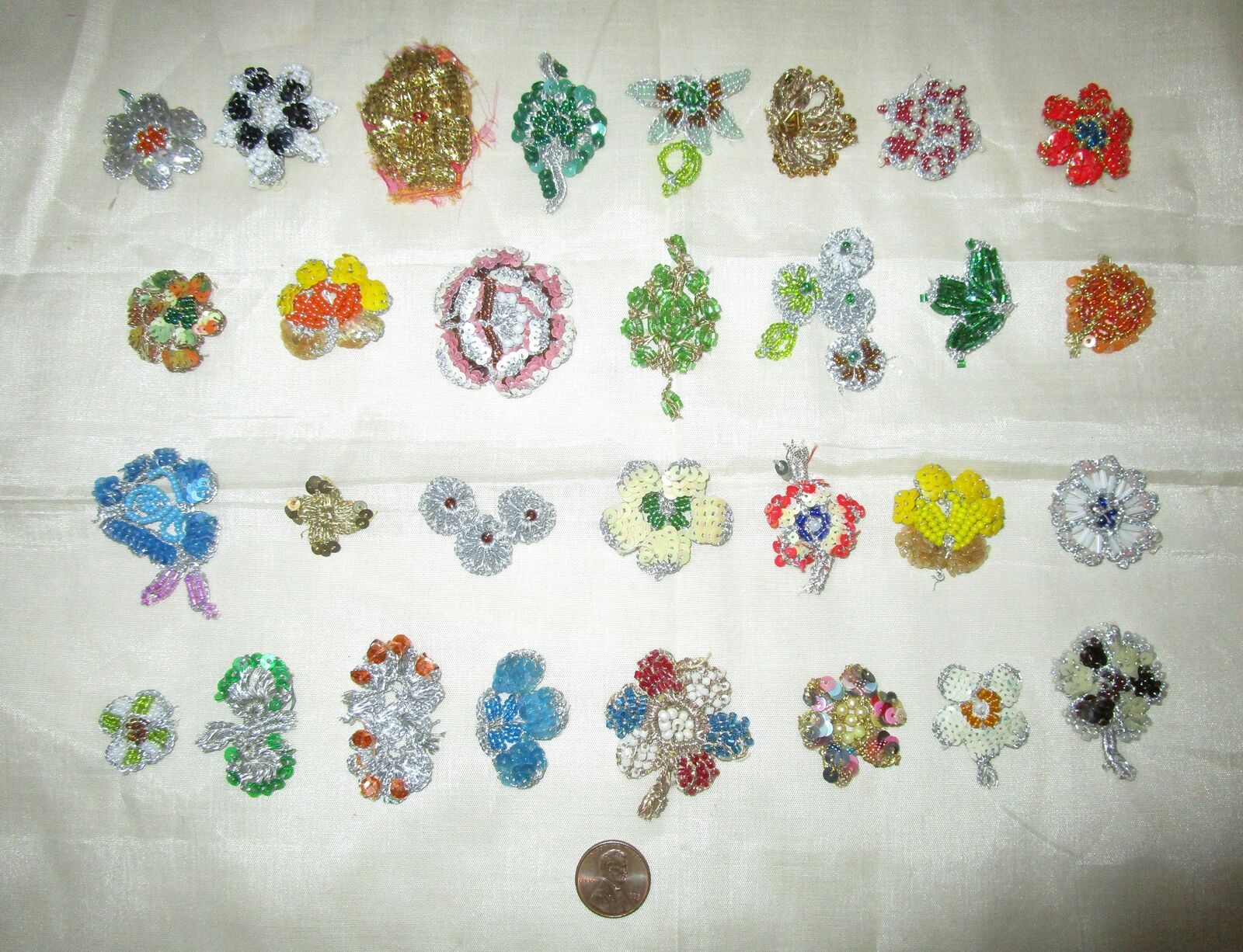 VERY RARE LOT Antique Vintage Sari APPLIQUE APPLIQUES 25 Pcs DOLL CRAFT DECOR NR