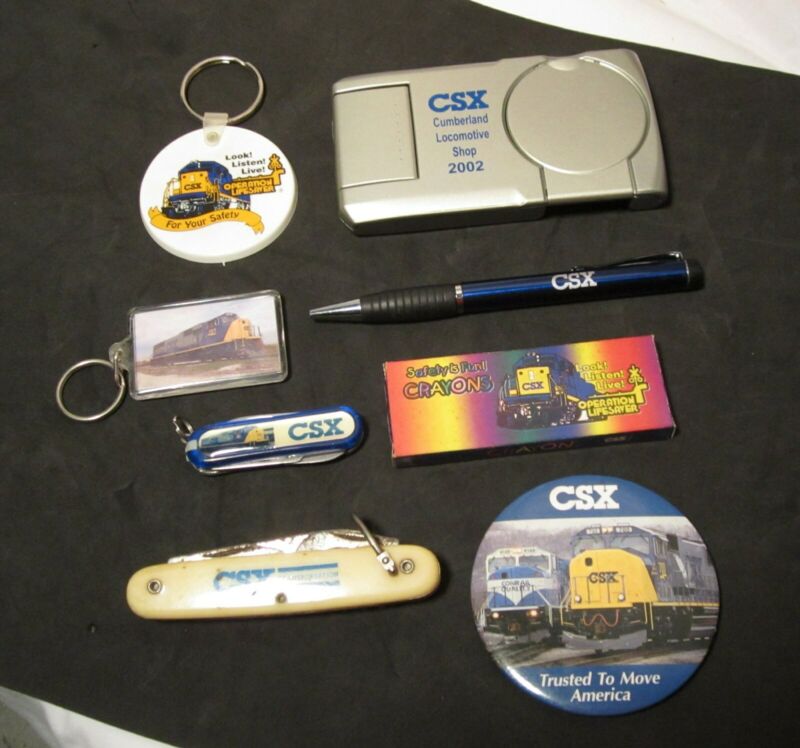 Title (ebay affiliate link): Vintage Railroad Memorabilia Lot CSX knifes pen key chain clock book lite crayon