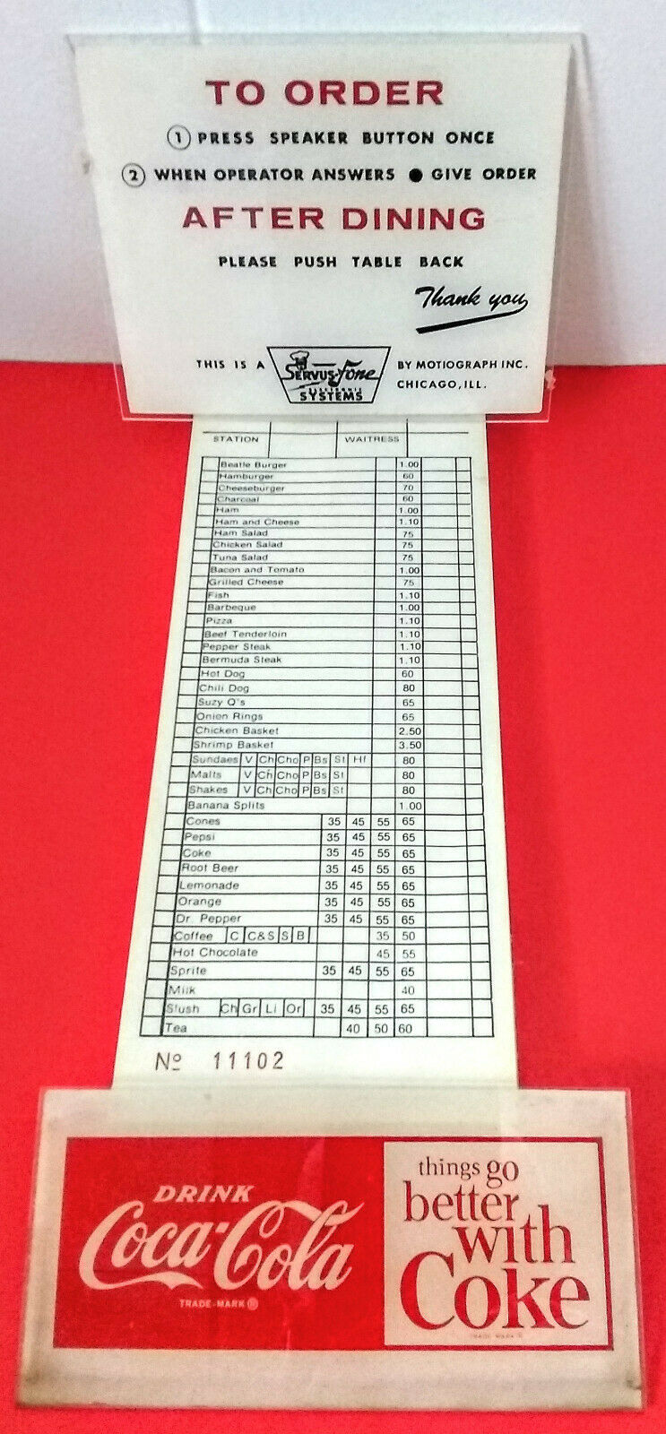 Title (ebay affiliate link): Vintage Diner/Drive-In Items-99 Page Original Menu Pad, Coke, Place Order Signs