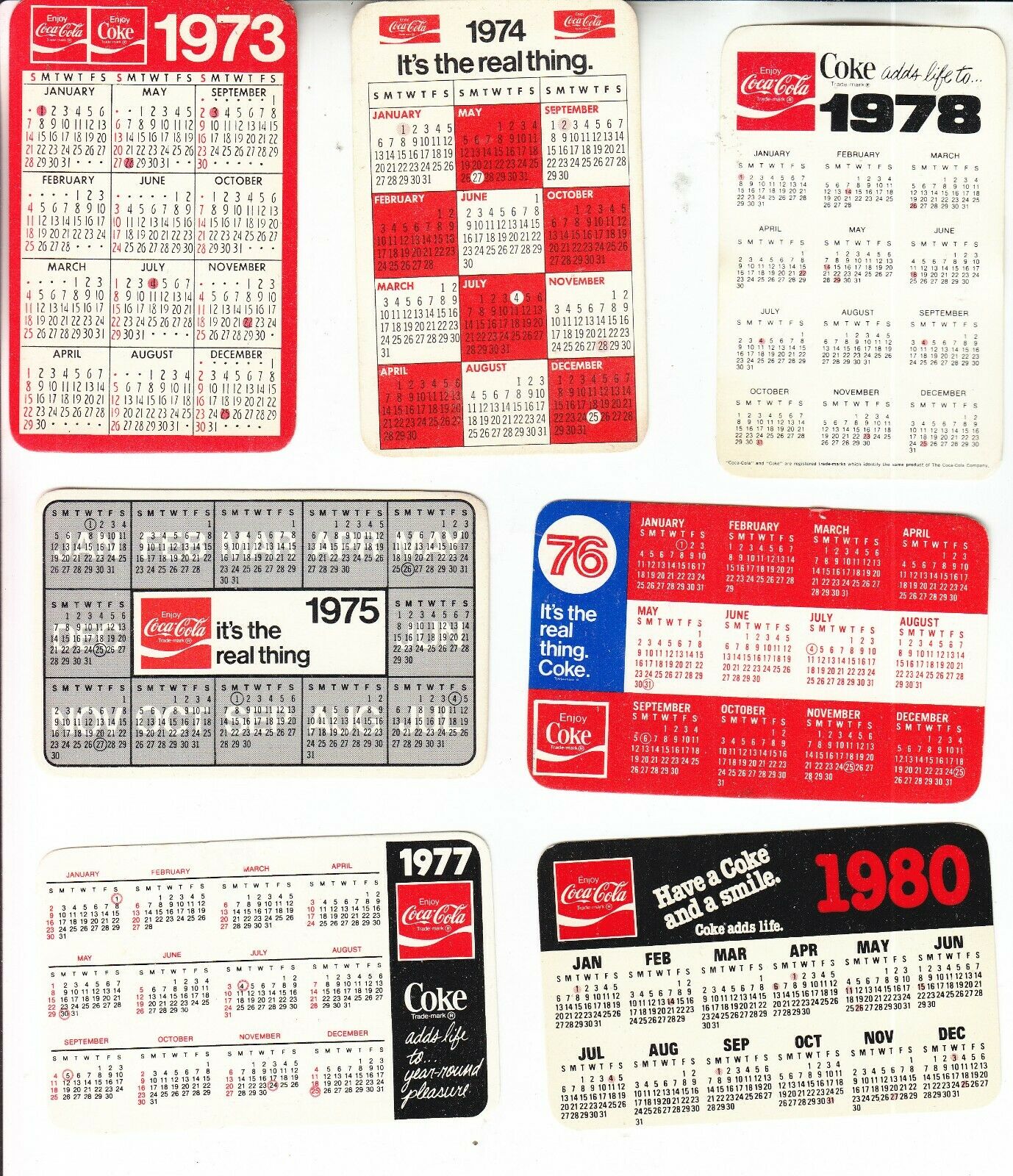 COCA-COLA POCKET CALENDARS DIFFERENT 1973, 1974, 1975, 1976, 1977, 1978,80