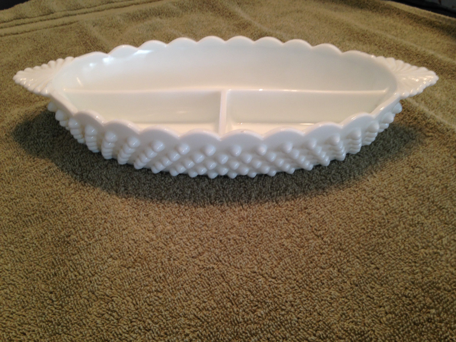 Title (ebay affiliate link): FENTON VINTAGE HOBNAIL WHITE MILK GLASS SIGNED 3 PART SERVING DISH