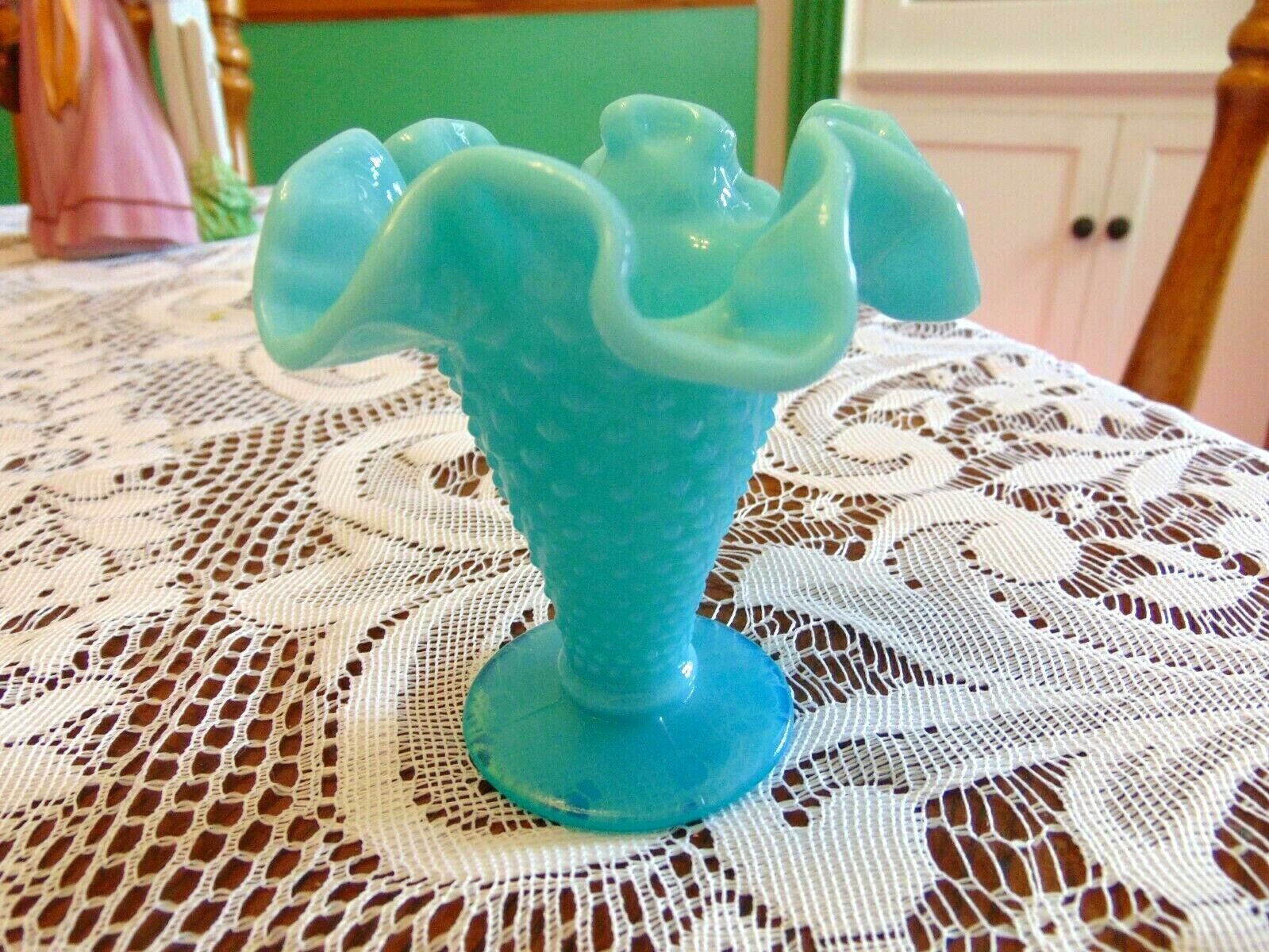 Early Fenton Turquoise Milk Glass Hobnail Vase